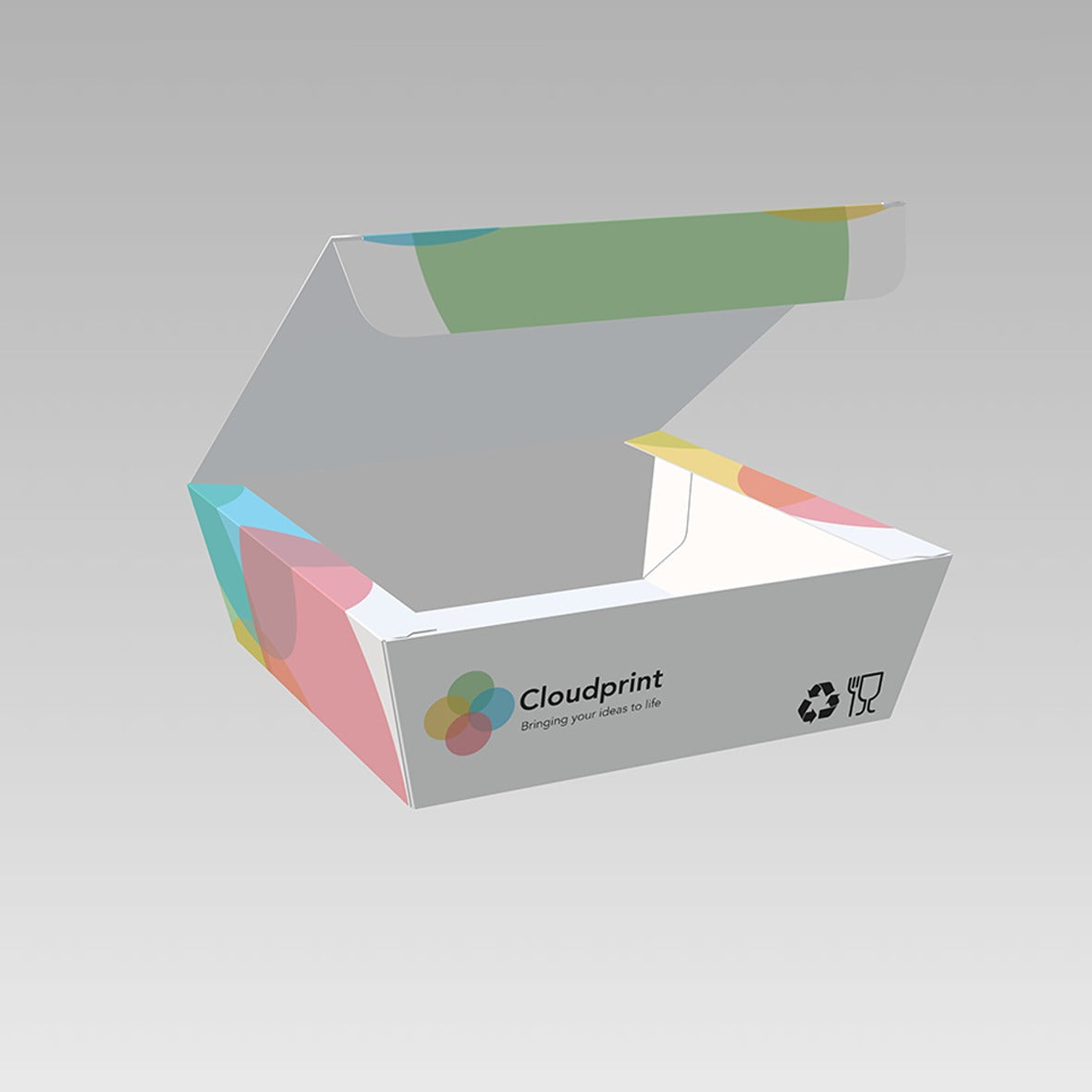 Takeaway Box Small dari Cloudprint Indonesia ini jawabannya! Keunggulan Waterbase Varnish-nya juga bikin kotak kemasan makanan ini lebih tahan air dan minyak, menjaga kualitas produk makanan di dalamnya. Nggak cuma itu, proses Die Cut yang presisi dan 4 corner Glueing bikin perakitan super gampang, praktis banget buat operasional harian.